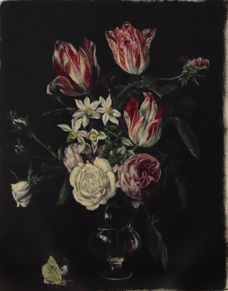 Flowers in a glass vase after Daniël Seghers or Daniel Seghers by Nelli Sántha in November, 2021.